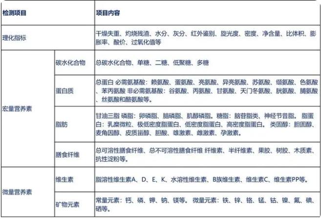 1.常規理化項目及營養成分測試項目